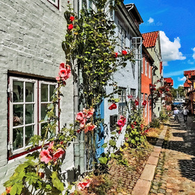 traße, gasse, kopfst … gasse in der stadt ribe … digitalkunst. gasse in der